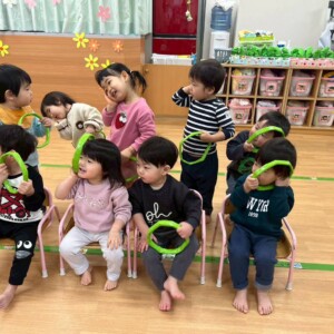 フタを開けて、そーっと白いお布団を取るよ〜フタを重ねて〜と、みんな上手に出来たね!