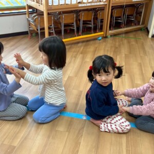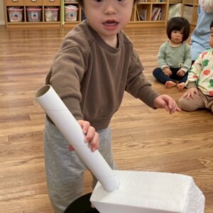 箱を揺らしてビー玉を転がすのを楽しむ子どもたち☺️💗