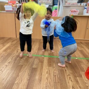 キャサリン先生が来るとみんなで『Hello〜🙌🏻』と元気よくご挨拶をする子どもたち😊✨ 今日は様々な形の英単語をお勉強しました‼️ circle🔴square🟥triangle🔺heart❤️…いろんな形が出てきたね😳 手で形を作りながら繰り返し発音したよ✨ 最後は今日習った形がたくさん出てくる『SHAPE...