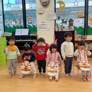 今日は0、1歳児さんはリトミックをしました🎶☺️ 始まりの曲が聞こえると、きっちり座ってご挨拶✨みんなとっても上手になりました🥰 まずは、準備体操を兼ねて、『サンサン体操』を踊りました🩰 みんな楽しそうに踊っていましたよ💗 当日も頑張ろうね🤗 『大きな栗🌰の木の下で』の曲に合わせて身体を動かしたり、焼き芋グ...