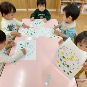 今日の0.1歳さんは2月の歌「ふしぎなポケット」に ちなんだお絵かきをしました😊 ビスケットにチェリーのシールを貼ったり、 クレパスでお砂糖の模様を描いたり、 チョコレートの茶色の絵の具を塗ったりしましたよ✨ 出来たビスケットを歌いながら ポケットに入れたり出したりして、 遊び...